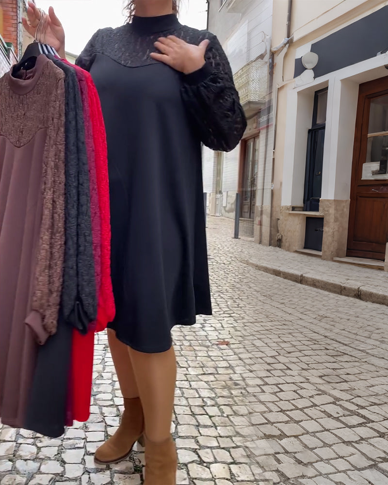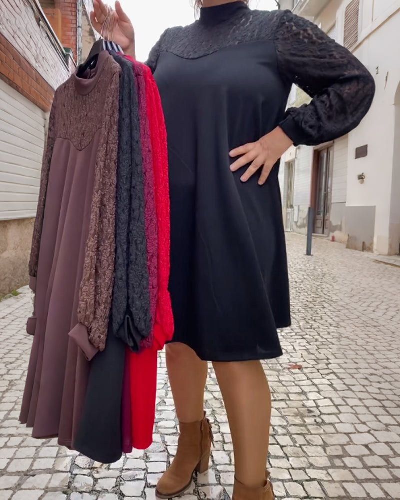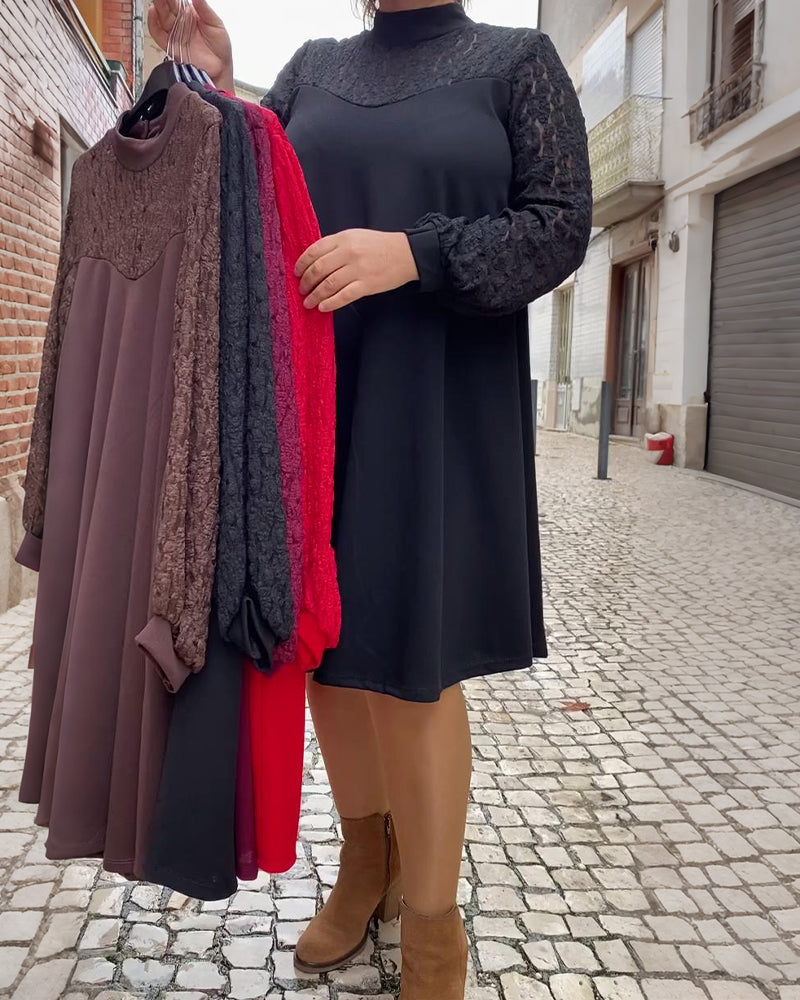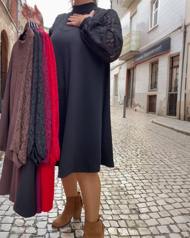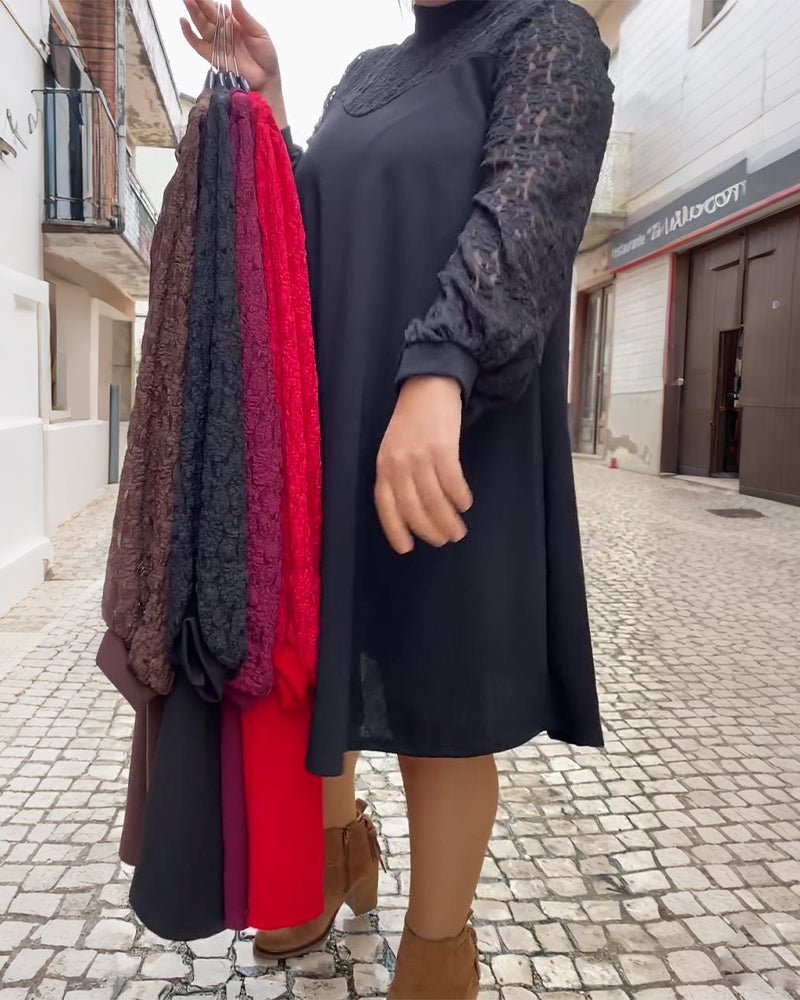Designed in a timeless solid color with exquisite lace details, this dress is perfect for daily wear. Available in sizes ranging from S to 3XL, it ensures a regular fit that flatters every body type.